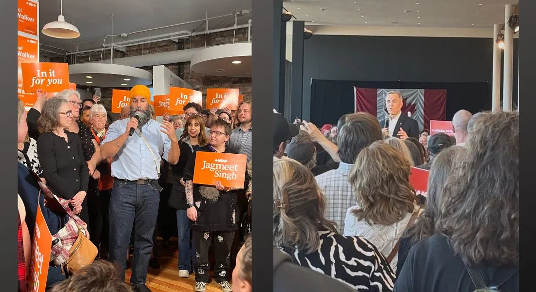 Just several blocks away, a completely different atmosphere and roughly 300 supporters welcomed NDP leader Jagmeet Singh to the party’s West campaign office. Singh didn’t focus much on Donald Trump, a trade war, or tariffs. Instead, he began by listing what he believes both the Conservative and Liberal parties are not going to deliver for Canadian families. He says Pierre Poilievre aims to cut healthcare and pensions, whereas Mark Carney will cut PharmaCare and services for the average family in order to give tax cuts to millionaires.